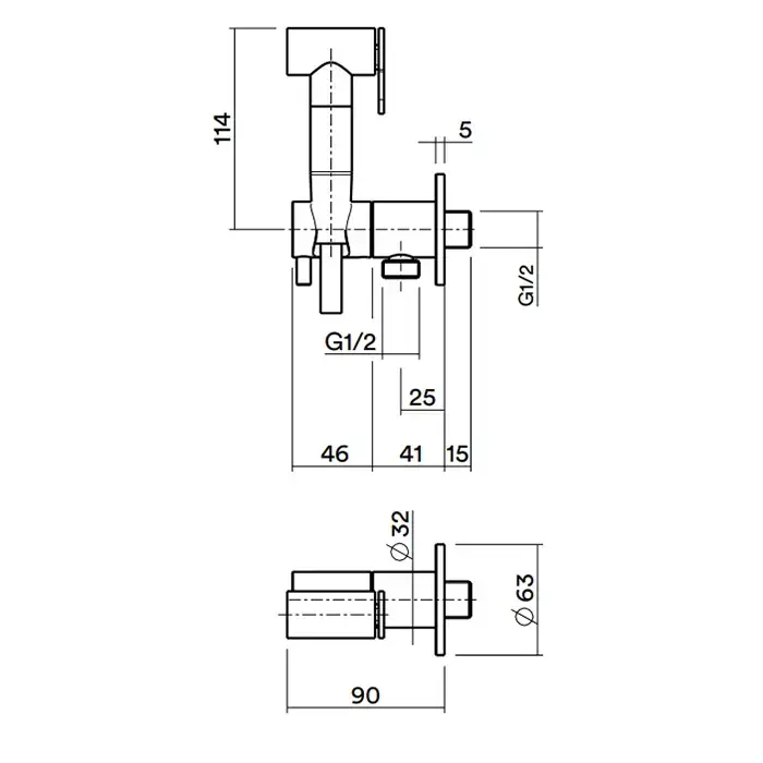 QuadroDesign Source Гигиенический душ, настенный, с запорным вентилем, цвет: brushed stainless steel