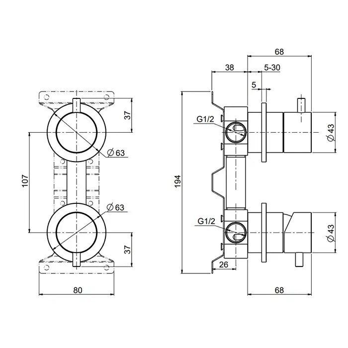QuadroDesign Source Смеситель для душа, встраиваемый, с переключателем на 2 потребителя, цвет: brushed stainless steel