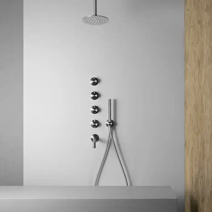 QuadroDesign Source Смеситель для душа, встраиваемый, термостатический, с 3-мя запорными вентилями, цвет: brushed stainless steel