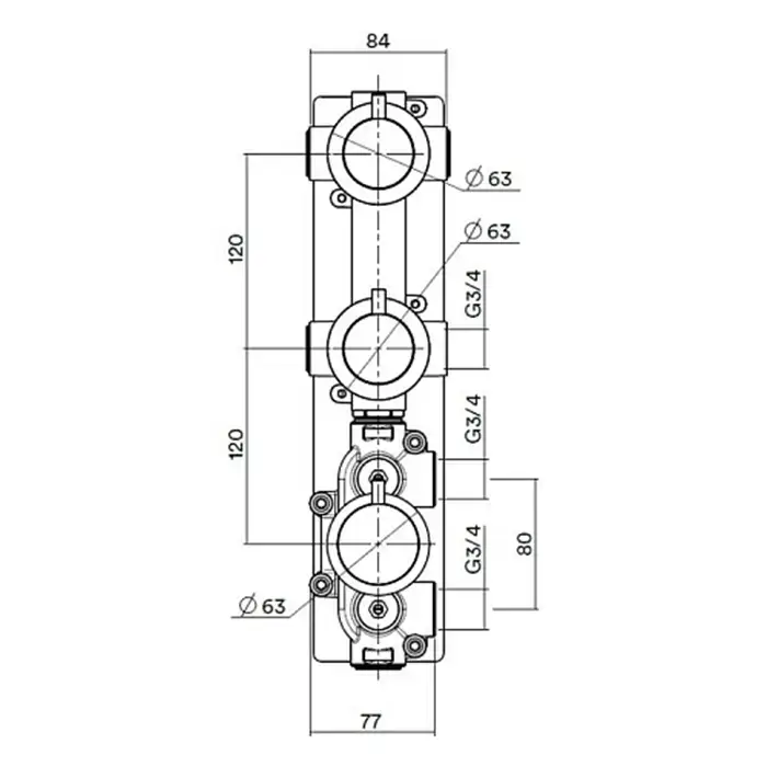 QuadroDesign Универсальная IN049 Встраиваемая часть смесителя термостатического из стены с 2-мя запорными вентилями