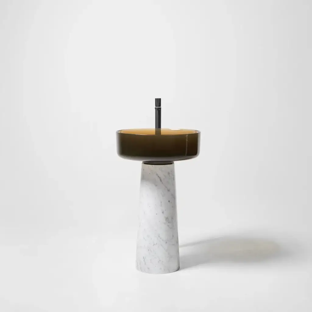 раковина-CRISTALMOOD BRONZO, пьедестал-MARMO BIANCO CARRARA