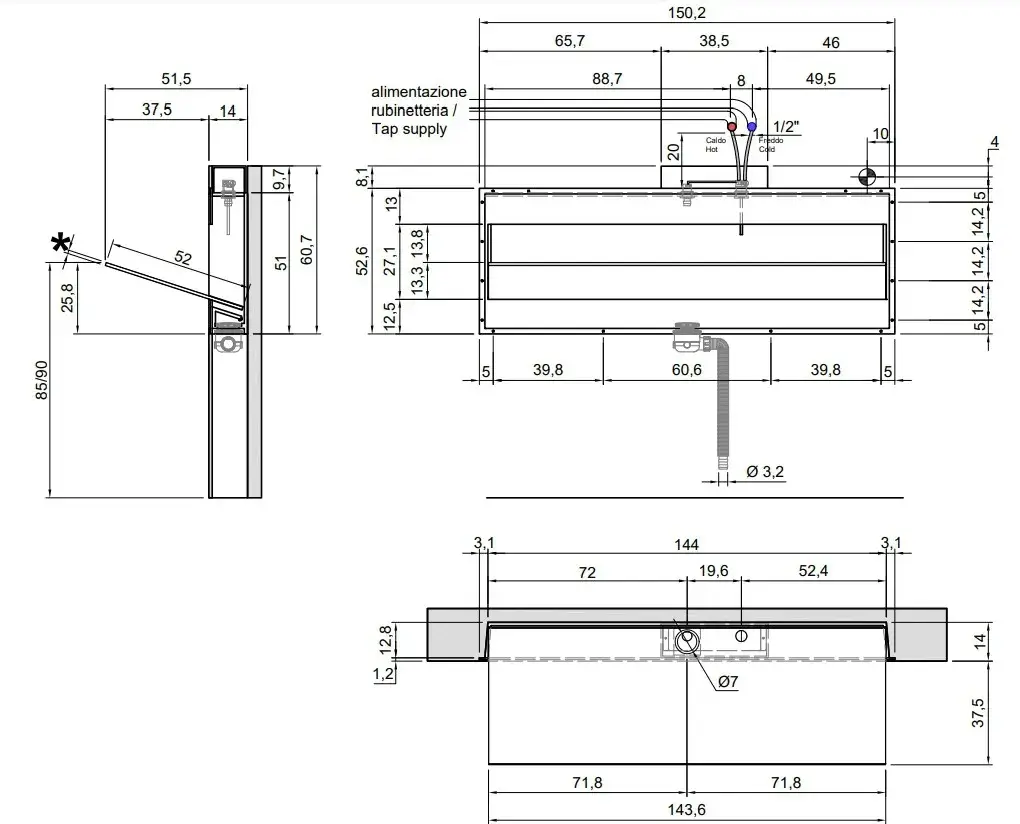 Antonio Lupi Battigia Раковина 144х51.5х60.7 см, без отв., цвет: белый