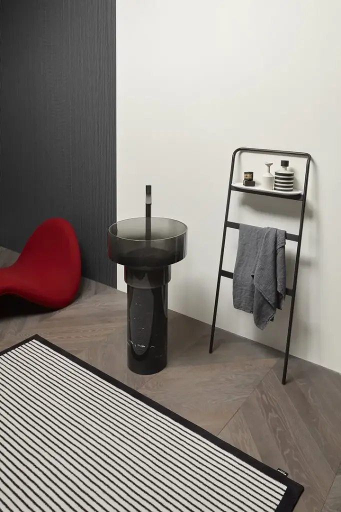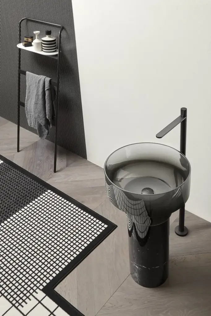 раковина-CRISTALMOOD FUMè , пьедестал-MARMO NERO MARQUINIA