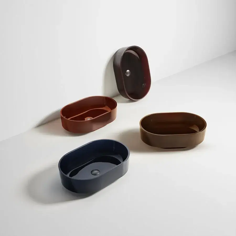 ANTONIO LUPI Borghi Раковина накладная Ø50х33 см, с пьедесталом, Cristalmood, с донным клапаном, цвет Gran Cru
