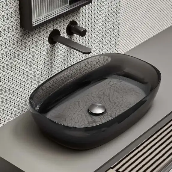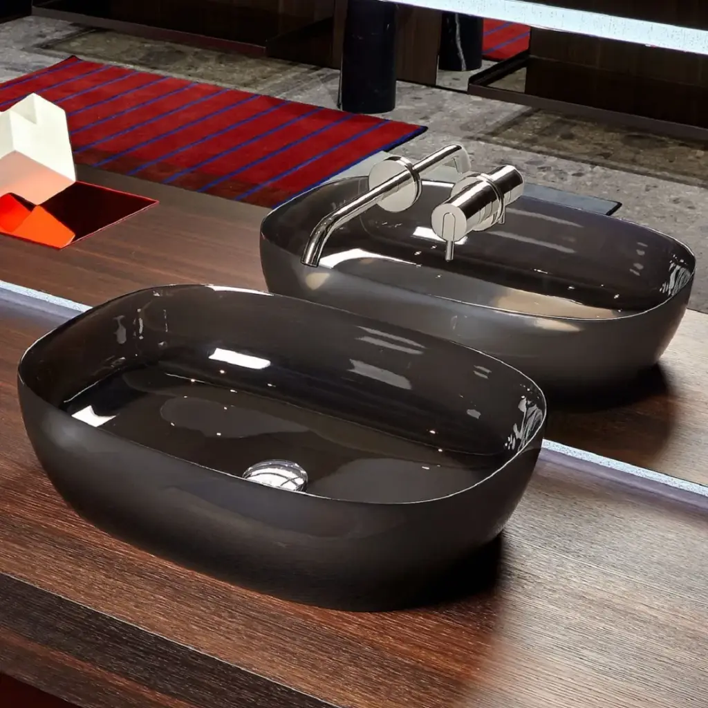 Antonio Lupi Senso Раковина 60х40х15см., накладная, без отв., без перелива, Cristalmood, цвет: Nebbia