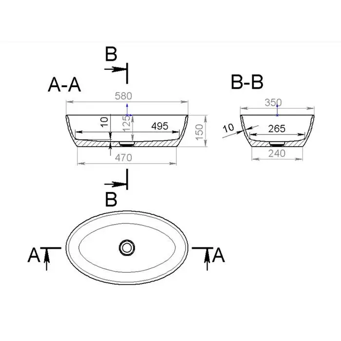 Salini Alda Раковина накладная 58х35х15cм, без отв., без перелива, материал: S-Stone, цвет: Tarpaulin grey