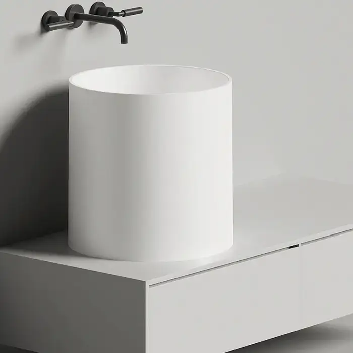 Salini Armonia Round Top 01 Раковина напольная 45х45х90см., слив в стену, без отв. под смес, с декор.накладкой, мат-л: S-Sense, цвет: белый глянцевый