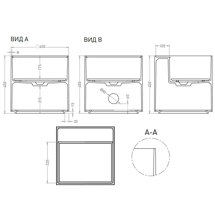 Salini Armonia Раковина напольная 45х45х85см, материал: S-Stone, слив в пол, цвет: белый матовый