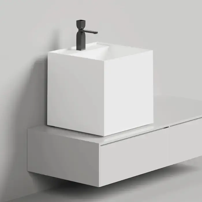 Salini Armonia 203 Раковина напольная 47х47х90cм., без отв., без перелива, донный клапан "Up&Down", материал: S-Stone, цвет: белый матовый