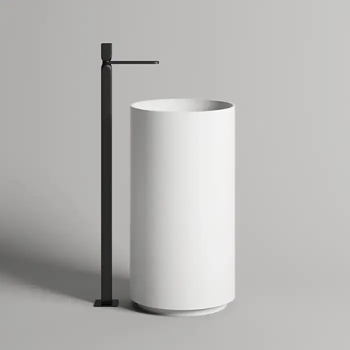 Salini Armonia Round Top 01 Раковина напольная 45х45х90см., слив в стену, без отв. под смес, с декор.накладкой, мат-л: S-Sense, цвет: белый глянцевый