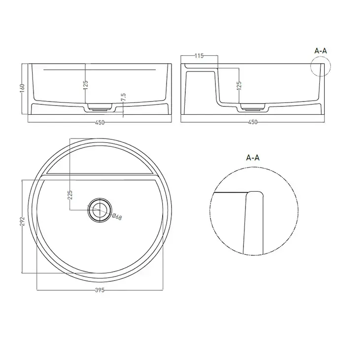Salini ARMONIA TOP 202 Раковина на столешницу 450х450х116мм, без отв.под смеситель, донный клапан D502, мат-л: S-Sense, глянцевый, белый.