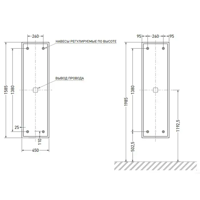 SALINI Зеркало для ванны ARMONIA 450×1585х25мм., фоновая и фронтальная подсветка 3в1 , сенсор движения включения подсветки , крепления, без подогрева