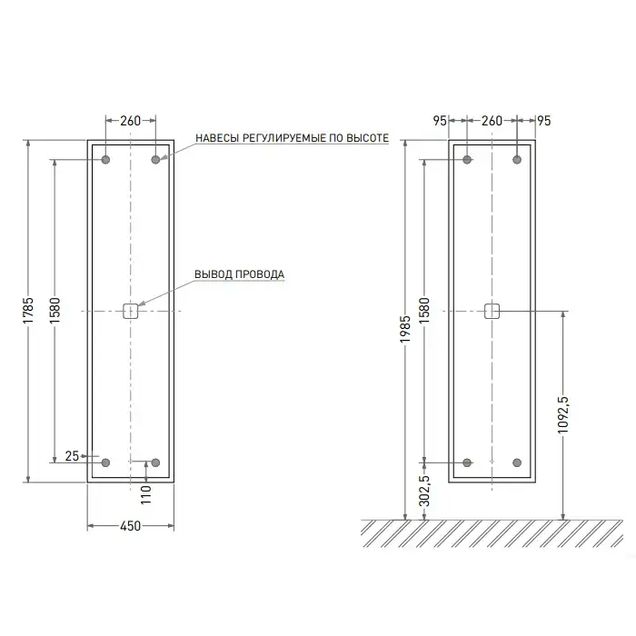 SALINI Зеркало для ванны ARMONIA 450×1785х25мм., фоновая и фронтальная подсветка 3в1 , сенсор движения включения подсветки , крепления, без подогрева