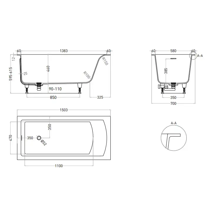 Salini Cascata Kit Ванна 150x70х62.5см., встраиваемая, S-Sense, цвет: белый глянцевый