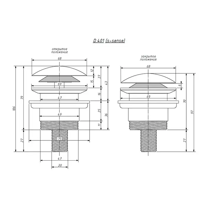 Salini D401 Донный клапан для ванны "Up&Down", S-Stone, цвет: белый матовый