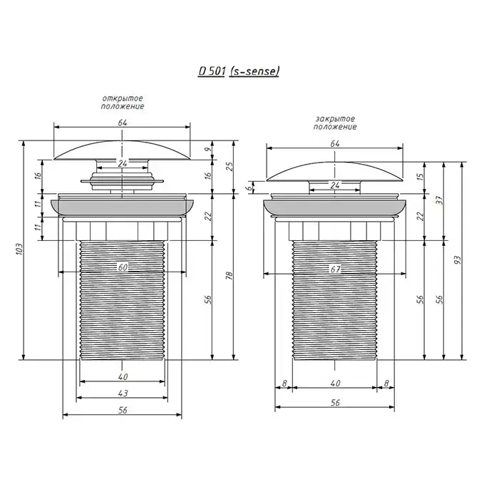 Salini Донный клапан для раковины D501"Up&Down" для моделей Callista 101-108/Gloria 301-311/Ottavia, S-Stone, цвет: белый матовый