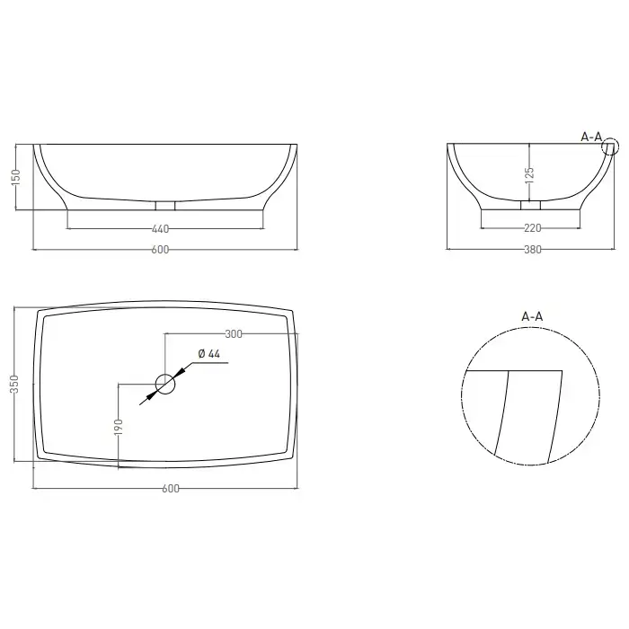 Salini Раковина накладная 600x380x150мм, S-Sense GLORIA 04, цвет белый глянцевый