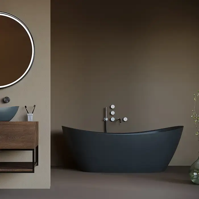 Salini NOEMI Ванна отдельностоящая 1850х780х720мм, донный клапан, сифон, мат-л: S-Sense, глянцевый RAL9005 полностью