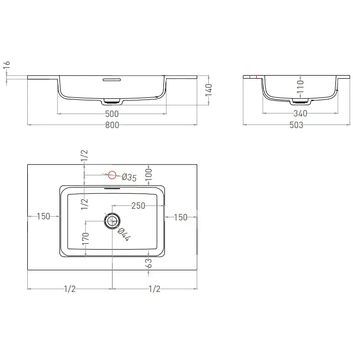 Salini Onda Plus Essentials Раковина 80х50х14см., подвесная, 1 отв., цвет: белый матовый
