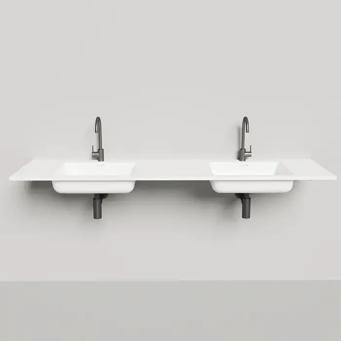 Salini ONDA Раковина 1800x500х163мм, c 1 отв. под смеситель x2, c переливом, мат-л: S-Stone, белый матовый