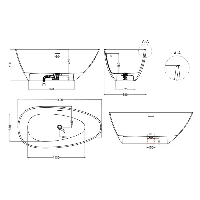 Salini Paola Ванна 160х77х57см., отдельностоящая, "Up&Down", сифон, слив-перелив, S-Sense, цвет: белый