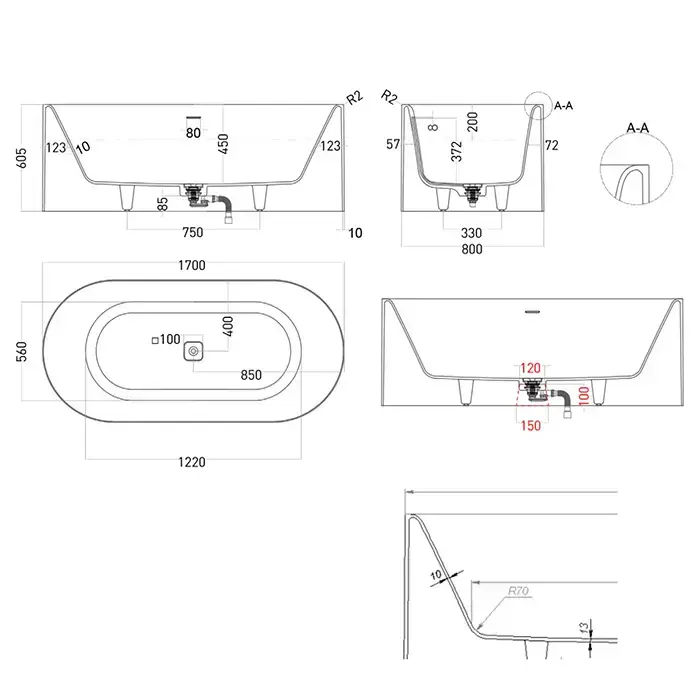 Salini Sofia Ванна отдельностоящая 170x80cм, донный клапан "Up&Down", сифон, слив-перелив, материал: S-Sense, цвет: белый глянец