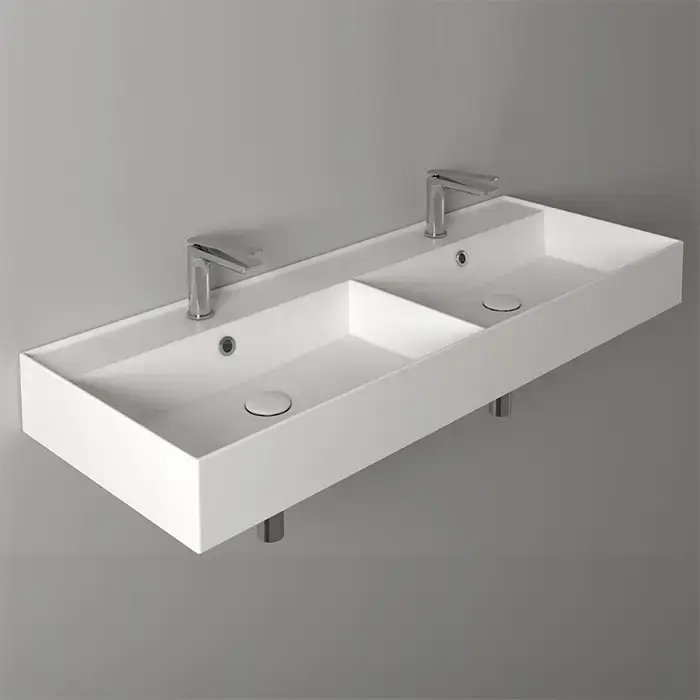 SIMAS AGILE Раковина двойная подвесная 121х46 см, с переливом, с 2 отв под смеситель,цвет белый