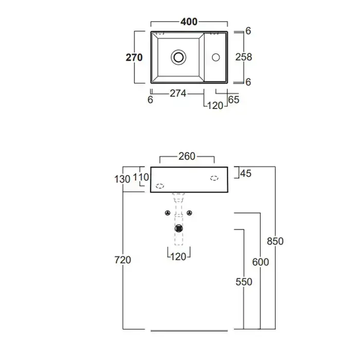 SIMAS AGILE Раковина подвесная 40х27 см, правая , с 1 отв под смеситель,цвет белый