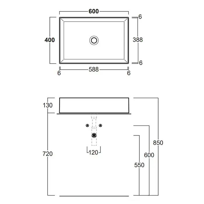 SIMAS AGILE Раковина на столешницу 60х40 см., без перелива, без отверстия под смеситель, цвет черный матовый