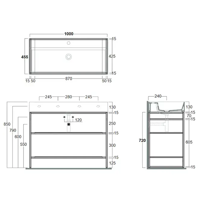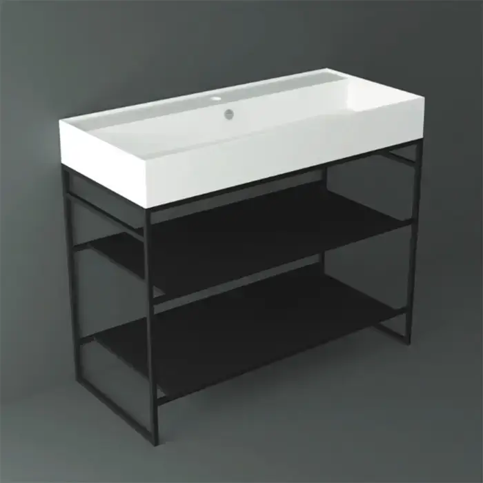 Simas Agile Структура металлическая 101x46xh72см, напольная, для раковины с 1 отв., AG101, с 2 полками, цвет: черный матовый