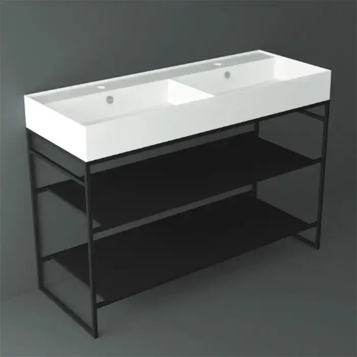 SIMAS AGILE Структура металлическая 121x46xh72 см, напольная, для раковины AG121, с 2 полками, цвет черный матовый