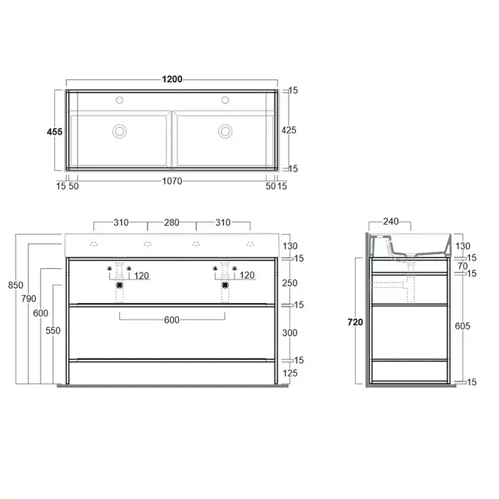 Simas Agile Структура металлическая 121x46xh72см, напольная, для раковины с 1 отв., AG121, с 2 полками, цвет: черный матовый
