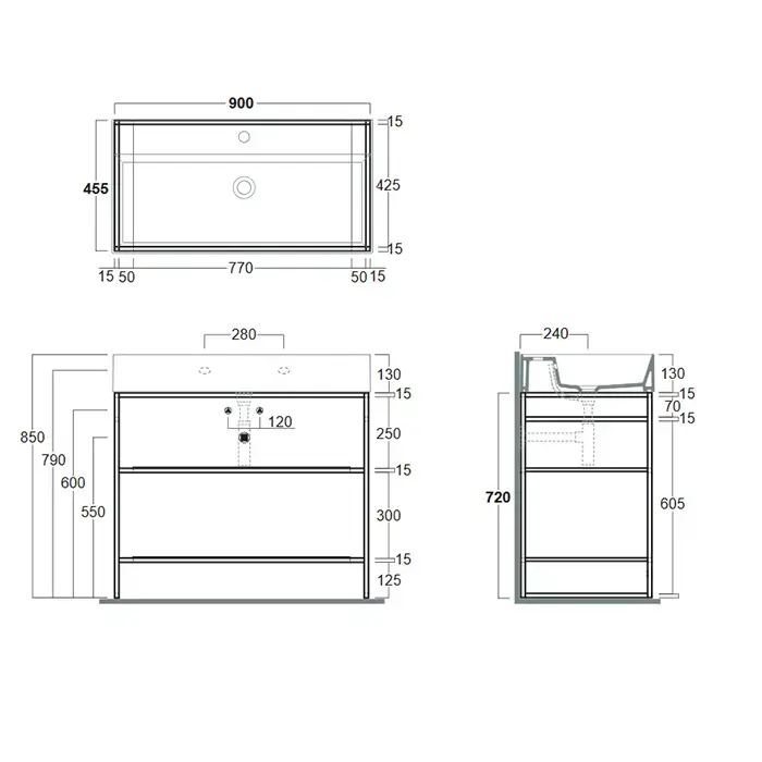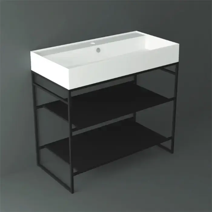 Simas Agile Структура металлическая 91x46xh72см, напольная, для раковины с 1 отв., AG91, с 2 полками, цвет: черный матовый