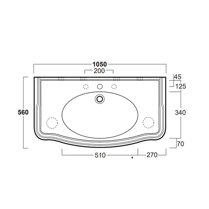 SIMAS Arcade 105, раковина-консоль 105*56, с 3 отв. под смеситель (2отв. выбитых вручную), цвет: белый