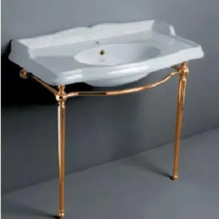 SIMAS Arcade Консоль 90х56см, c белой раковиной на 1 на отв, напольная, цвет: золото