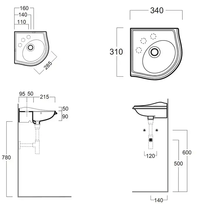 SIMAS Arcade Раковина угловая 34x34см с 1 отв. под смесит., пробитым вручную, цвет белый