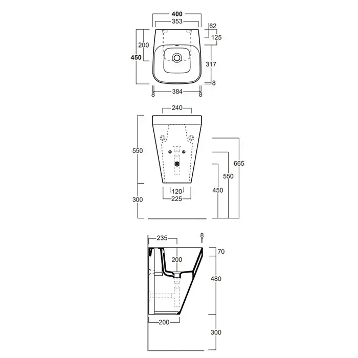 Simas Baden Baden Раковина подвесная 40х45х55 см, с 1 отв. для смесителя, цвет белый (без спецкреплений F85)