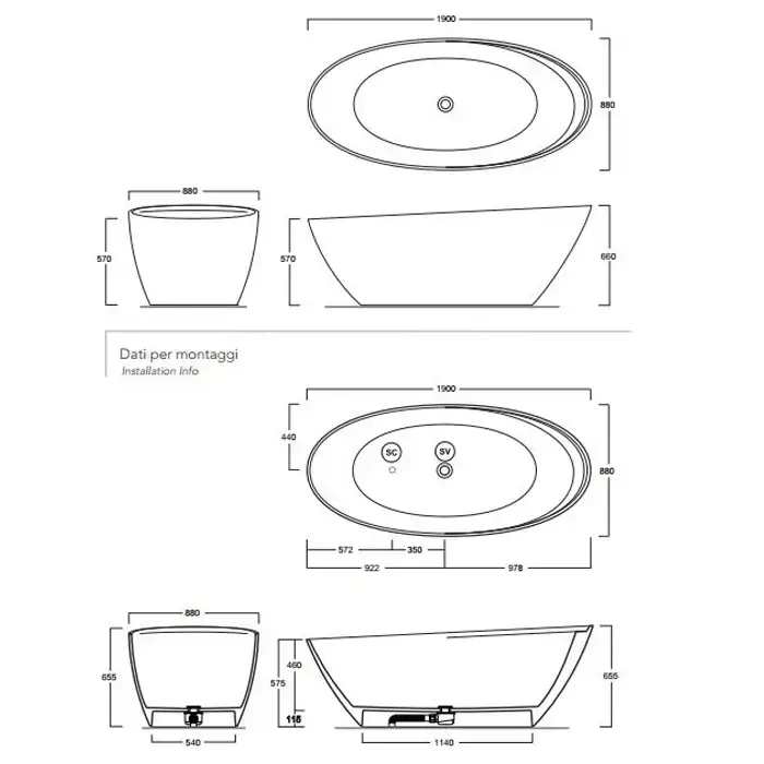 Simas Bohemien Ванна свободностоящая из Crystal Tech 190*88*66 см со сливной арматурой (продается только с учетом упаковки)