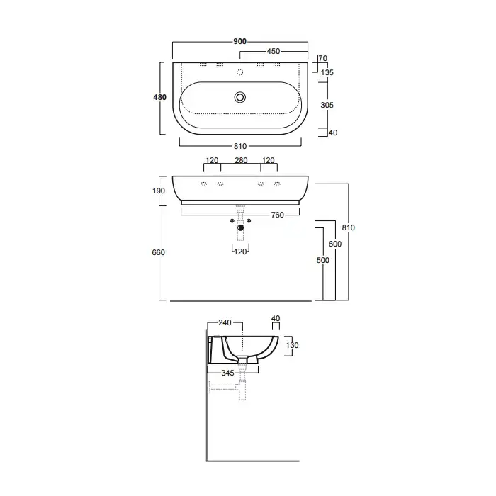 SIMAS E-LINE Раковина 900*480мм с одним намеченным отверстием подвесная, белый