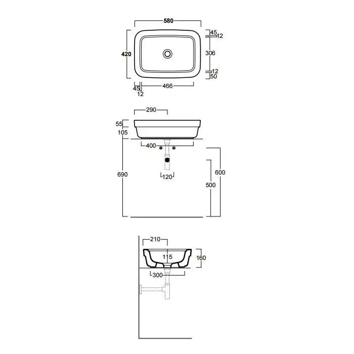 SIMAS Evolution Раковина 58х42 см, без отв., цвет: белый