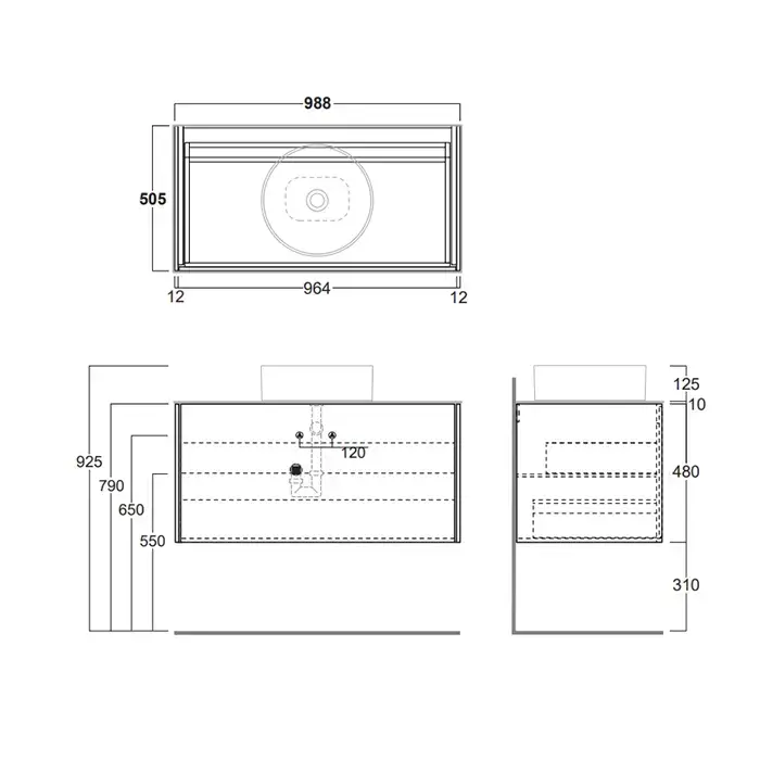 SIMAS FORIU Тумба под раковину 990х500х480 мм., подвесная, для столешницы FO10, 1 ящик белый матов, боковые фасады цвет SHERWOOD (с сифоном и крепежои
