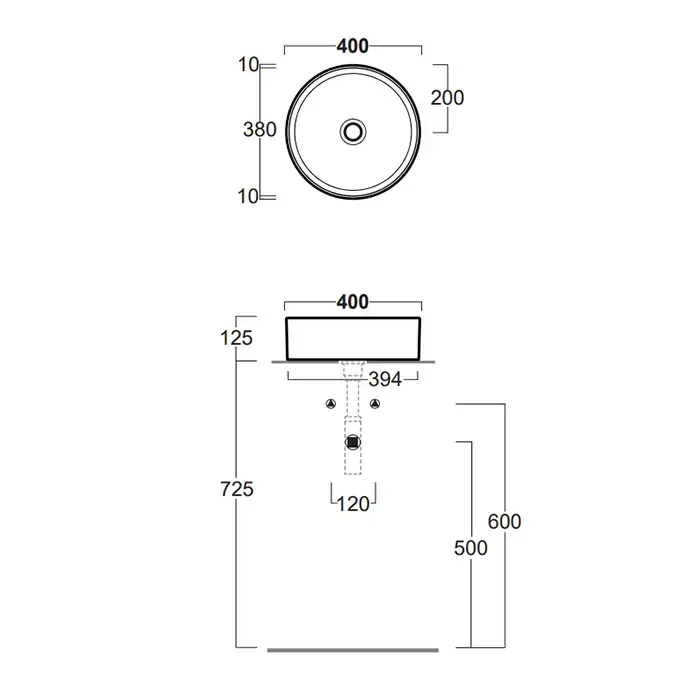 SIMAS FORIU Раковина круглая накладная ø40x13 см, без отв под смеситель,цвет белый