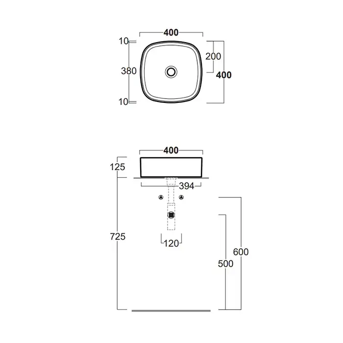 SIMAS FORIU Раковина квадратная накладная 40x40x13 см, без отв под смеситель,цвет белый