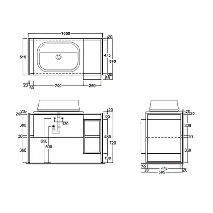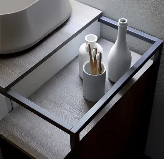 Simas Frame Металл.структура 105x57xh72 с ящиком с мех.открывания push pull и с открытым элементом. Сифон имонт.набор включены. цвет серый ясень