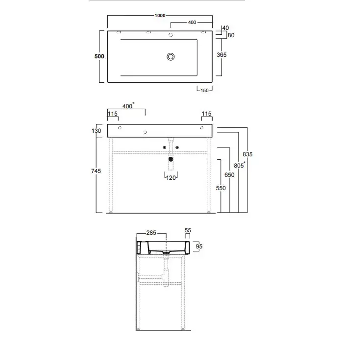 Simas Frozen Раковина-консоль 100х50 см, 1 отв., цвет: белый