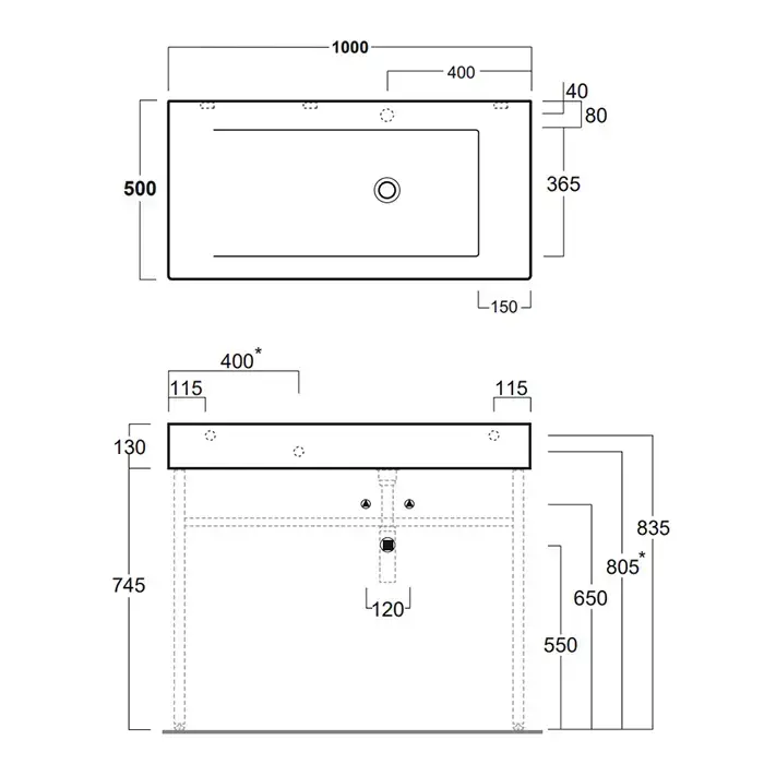 Simas Frozen консоль 100х50см с 1 отв. выбитым вручную, для установки на структуре, цвет белый