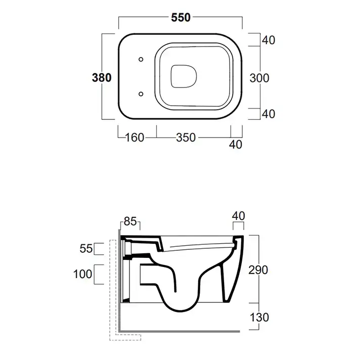 Simas Henges Унитаз подвесной 38х55см.,безободковый, цвет: tela matt