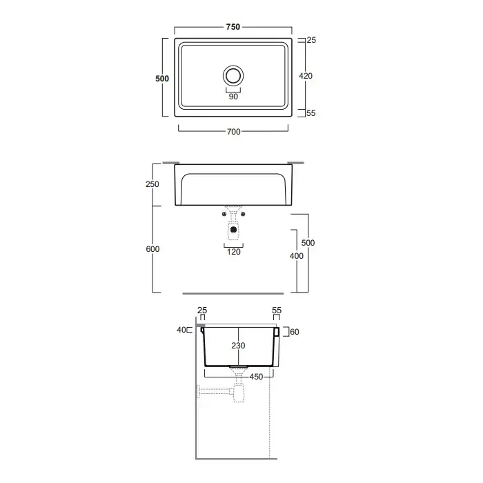 SIMAS Кухонная мойка, накладная, 75х50хh25 см, цвет белый (без донного клапана)