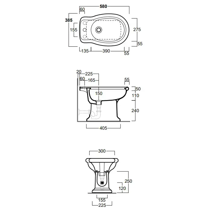 SIMAS Lante Биде напольное с 1 отверстием под смеситель, 39х58см, цвет: белый