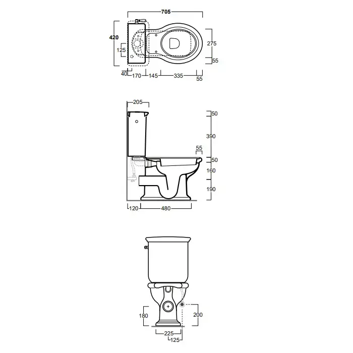 SIMAS Lante Унитаз моноблок 70.5х38.5см, с вертикальным сливом с бачком с боковой ручкой смыва, фурнитура бронза, цвет белый